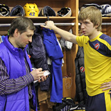 – В плей-офф главное – команда. И не важно, кто именно забивает, кто лидирует в списках самых результативных. С тем же Никитой Сошниковым, на сегодняшний момент лучшим бомбардиром команды, мы не делим шансы в игре. Есть момент у него – забивай, он в лучшей позиции – играем на него. Я только рад, что он – лидирует. Ведь мы со старта плей-офф играем в одной тройке (в регулярном чемпионате у Алешина – 37 шайб, у Сошникова – 38 и второе место в МХЛ).