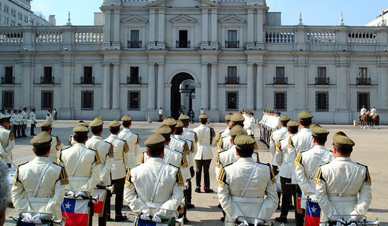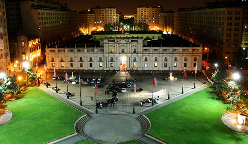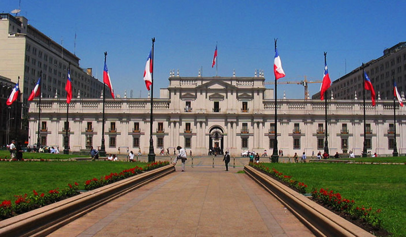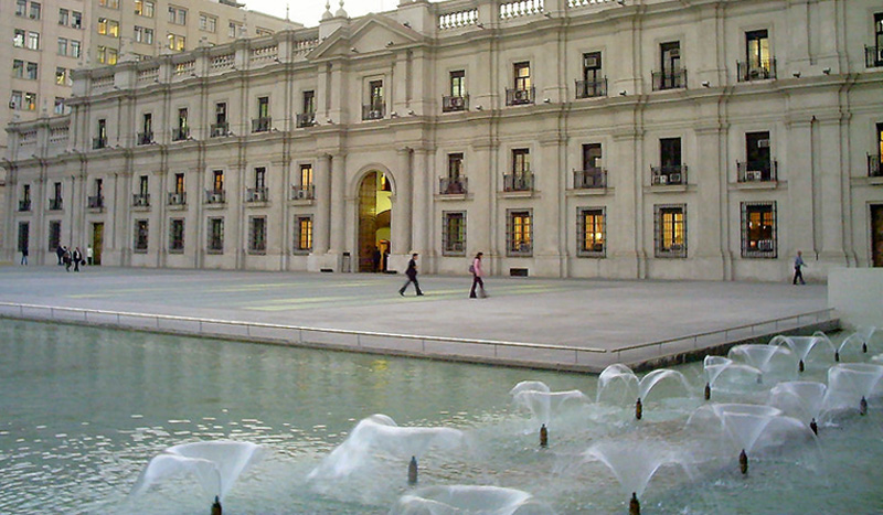 Красивейший дворец Ла Монеда был сооружён испанской колониальной администрацией Чили. Строительство началось в 1784 году и было закончено спустя 21 год в 1805. Само название в переводе с испанского означает “Монетный двор”. Началом к зарождению “Монетного двора” в столице Чили можно считать 1548 год, тогда мэрия Сантьяго запросила у испанских властей согласие на открытие мануфактуры по выпуcку денег. Тогда эта просьба была отклонена, но спустя много лет, а именно в 1732, мэрия снова решилась попросить у короля Испании согласие на учреждение Монетного Двора. Так и не дождавшись ответа, после двухлетнего ожидания, было решено отправить представителя чилийской стороны при испанском дворе. Этим человеком оказался Томас Азуа Итургойена, главной миссией которого была достигнуть разрешения на создание Монетного Двора. Естественно, для Испанской стороны это были непредвиденные нежелательные расходы. И чтобы поездка Азуа не оказалась тщетной, он предложил королю Испании вместо денег назначить частное лицо, чтобы оно финансировало постройку. Предложение было принято, этим частным лицом был назначен Франциско Гарсия Уидобро, который оказался испанцем, проживавшим в Чили, и вскоре он получил приказ оплатить все расходы на строительство. Монетный Двор начал своё функционирование в 1749 в одном из зданий в самом центре города под руководством Франциско Гарсия. Коммерческий успех данного начинания был увиден испанской короной, и в 1770 Гарсия был отстранён от управления. В 1772 Монетный Двор перешёл во владение короны Испании, а главой был назначен Доминго де Эйзагирре. Тогда же Монетный Двор перебрался в здание бывшей школы. Было очевидно, что оно тоже не подходило, корона Испании приняла решение построить новое здание, специализированное для нахождения в нём Монетного Двора. В 1777 начали рассматриваться проекты здания нового Монетного Двора. После долгих поисков епископом Сантьяго Мануэлем де Алдай, начавшихся в 1755 году, главным архитектором был назначен итальянский эмигрант Хоакин Тоэска. Также он был выбран в дальнейшем руководителем построек здания мэрии, нескольких церквей и городской тюрьмы. Тоэска подготавливал свой проект в течение года и в 1782 отправил на одобрение свой проект в Лиму. Местом для постройки была выбрана бывшая свалка вблизи монастыря Санто Доминго, напротив Центрального Рынка. В 1784 строительство было решено прекратить на некоторое время из-за того, что воды реки Мапочо мешают данному ходу строительства. Необходимо было приобретать, искать другое место для Монетного Двора. В том же году был найден подходящий участок в самом центре Сантьяго, в прошлом там располагались общежития иезуитов. Это и было окончательным пристанищем Монетного Двора сохранившегося до наших дней. Хоакин Тоэска как архитектор, что естественно для человека искусства, а тем более итальянца, хотел построить красивое сооружение, но как наёмник вынужден был подчиняться указаниям интенданта Сантьяго и других чиновников, каждый из них хотел внести свои изменения в проект, чуждые изначальному плану. Из-за такого отношения Тоеску пришлось разорвать контракт в 1797. Немного поразмыслив, Хоакин всё-таки решил закончить начатую собой работу. Его нового стремления, к сожалению, не хватило надолго, покушение в 1799 так и не дало ему увидеть завершения работ.