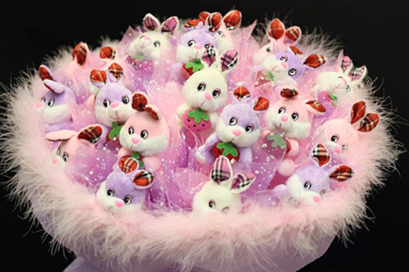 - Оригинальность. Среди традиционных цветочных композиций такой букет смотрится очень необычно. Прекрасные мишки, милые собачки или восхитительные кошечки выглядят великолепно.