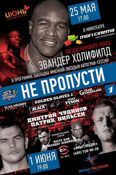 25 мая в 17:00 в ТРЦ «Июнь» кинотеатр МОРИ СИНЕМА состоится закладка звезды великого боксера Эвандера Холифилда.
