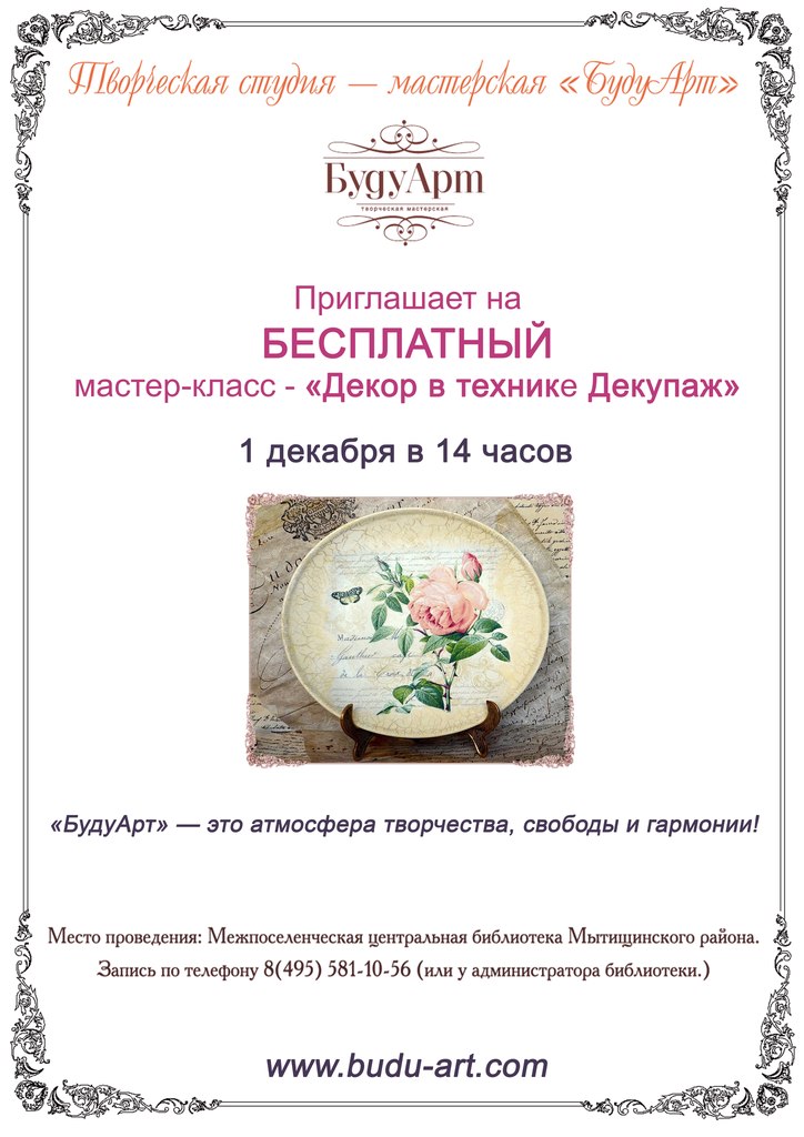 Бесплатный мастер класс "Декупаж" от творческой студии "БудуАрт"