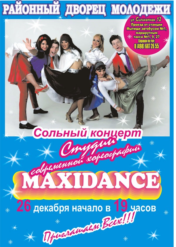 26 декабря в 19 часов в РДМ состоится сольный концерт студии современной хореографии MAXIDANCE.